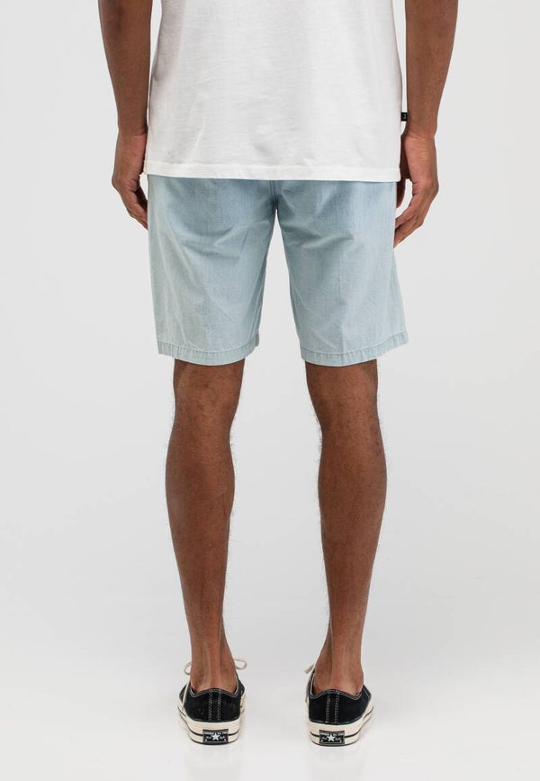 De stof is gemaakt van chambray, een dunne en zachte katoenkwaliteit die comfortabel draagt, vooral op warmere dagen.